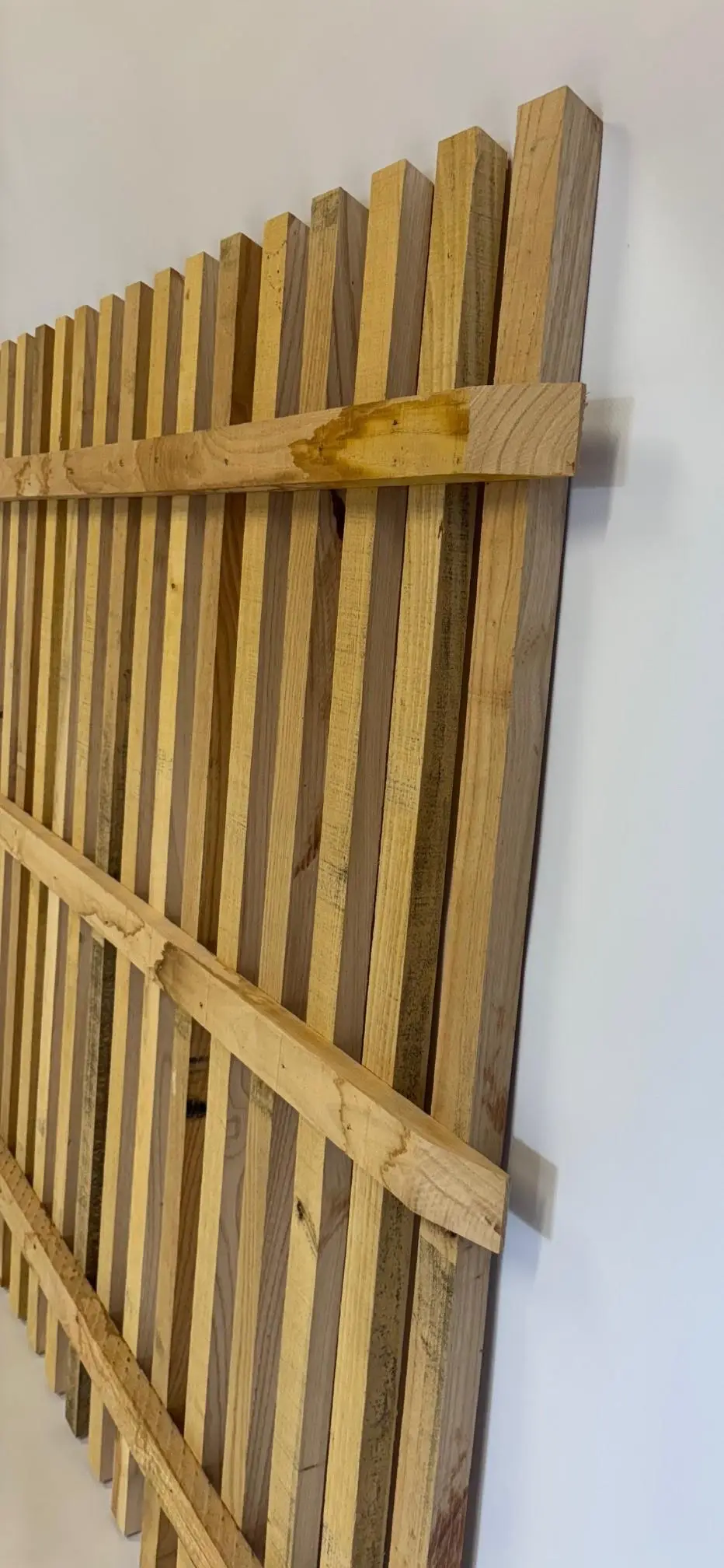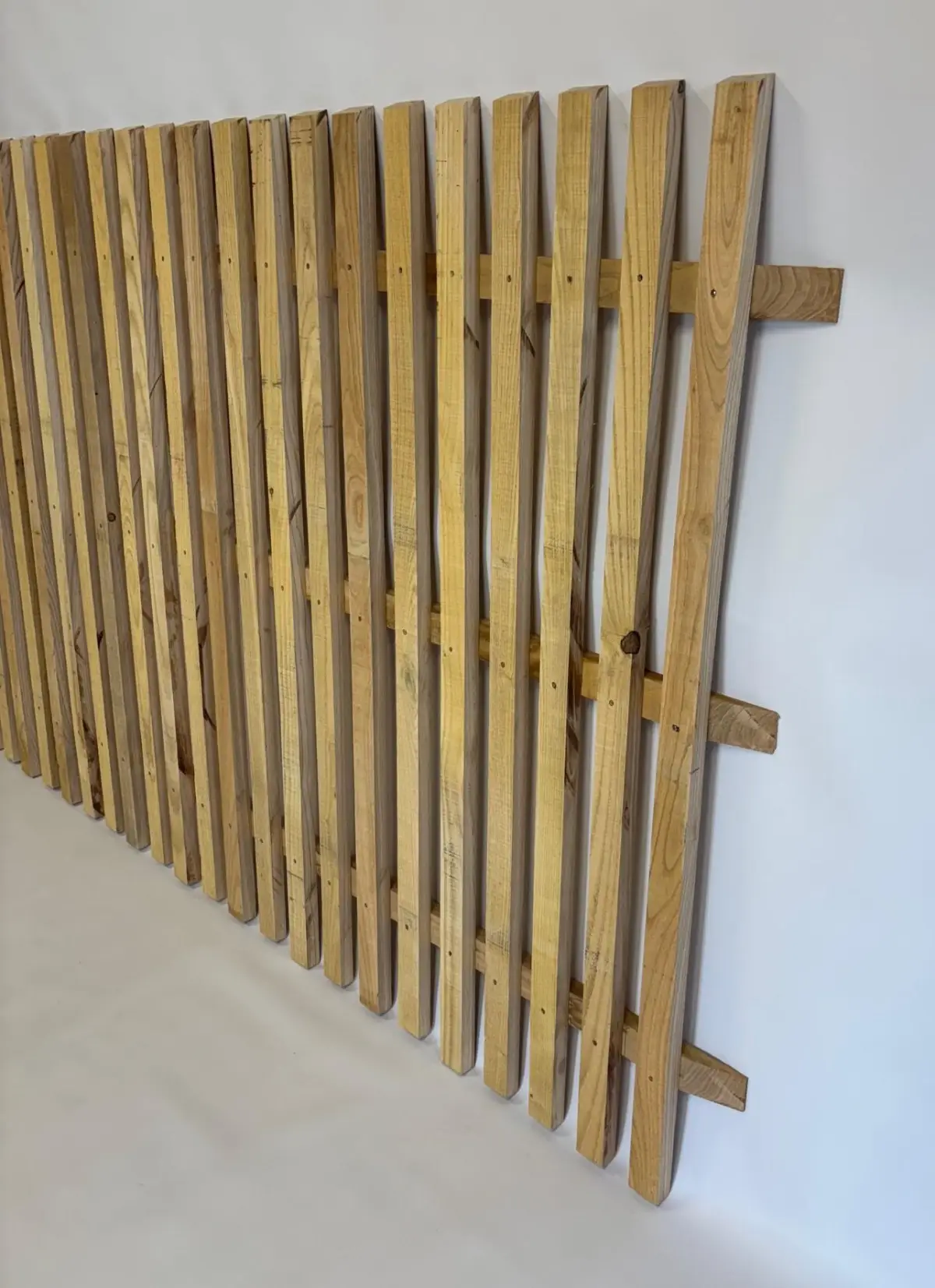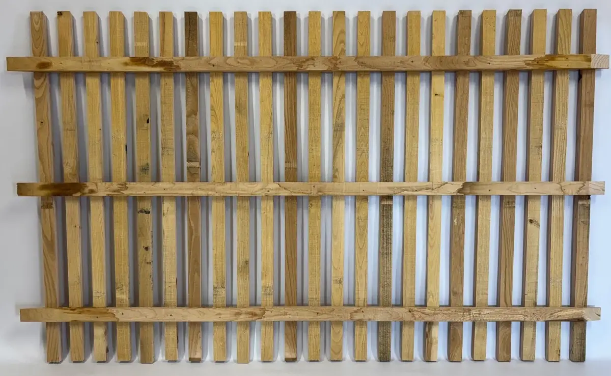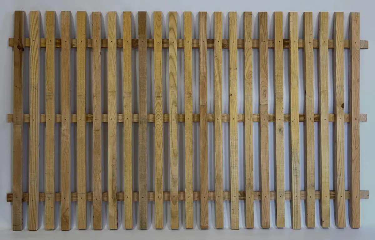 - Montants : Lattes de châtaignier 45 × 22 mm, tête biseautée