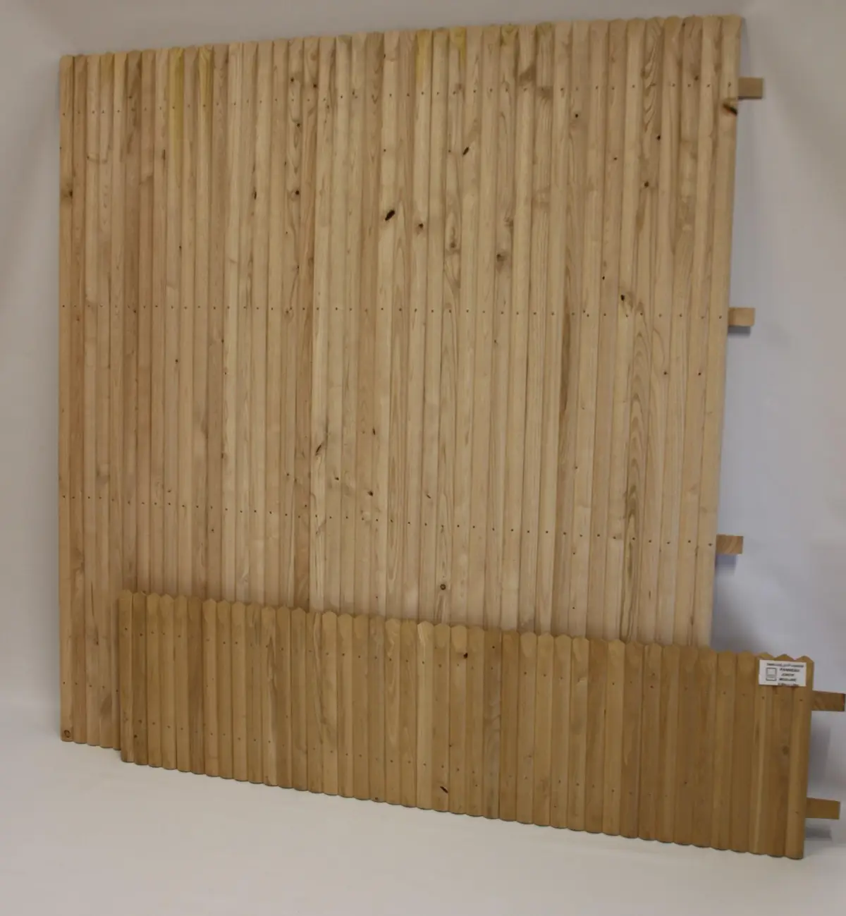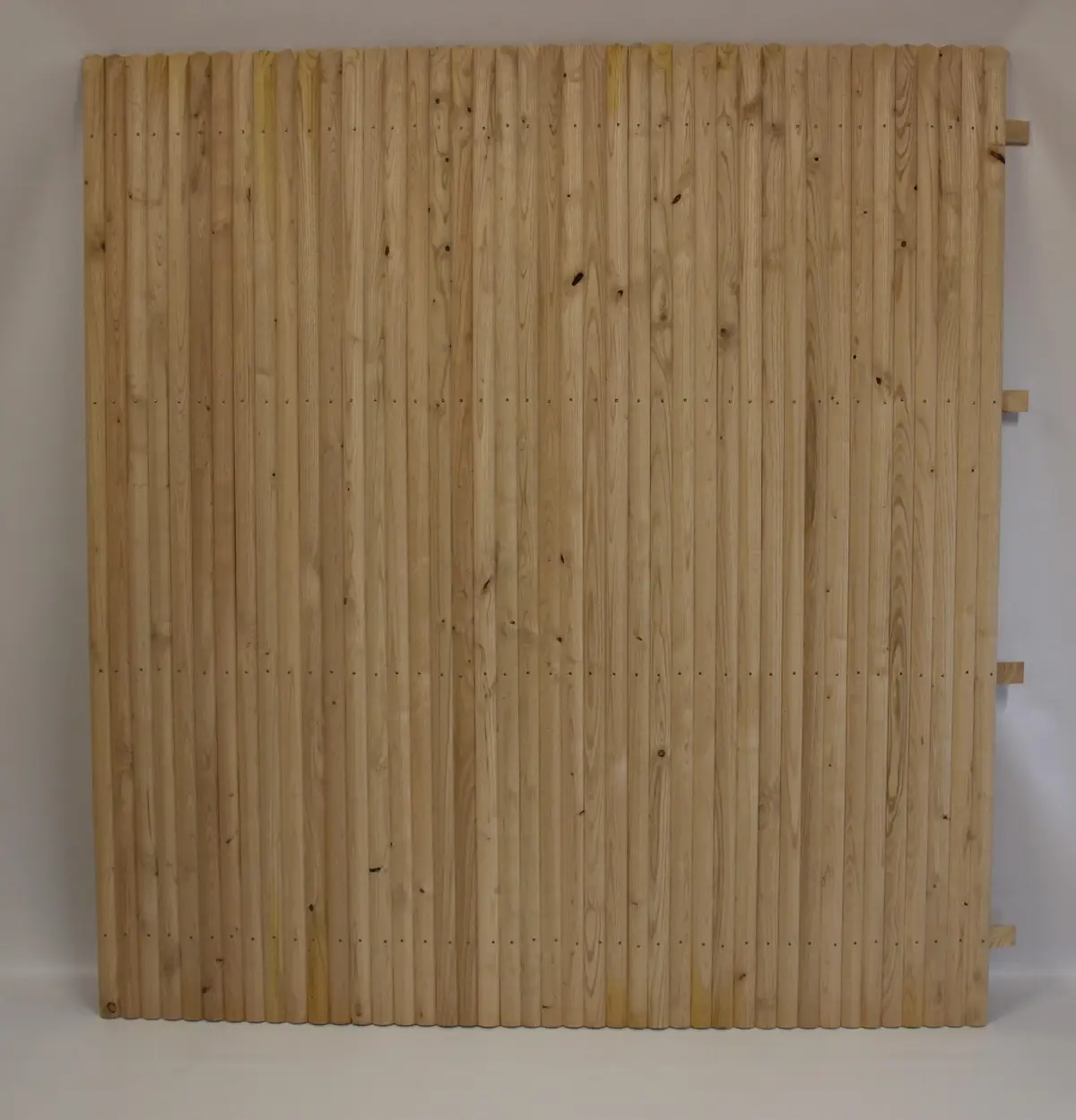 - Montants : Échalas moulurés (demi-ronds usinés de section 45mm * 22mm, identiques et lisses)