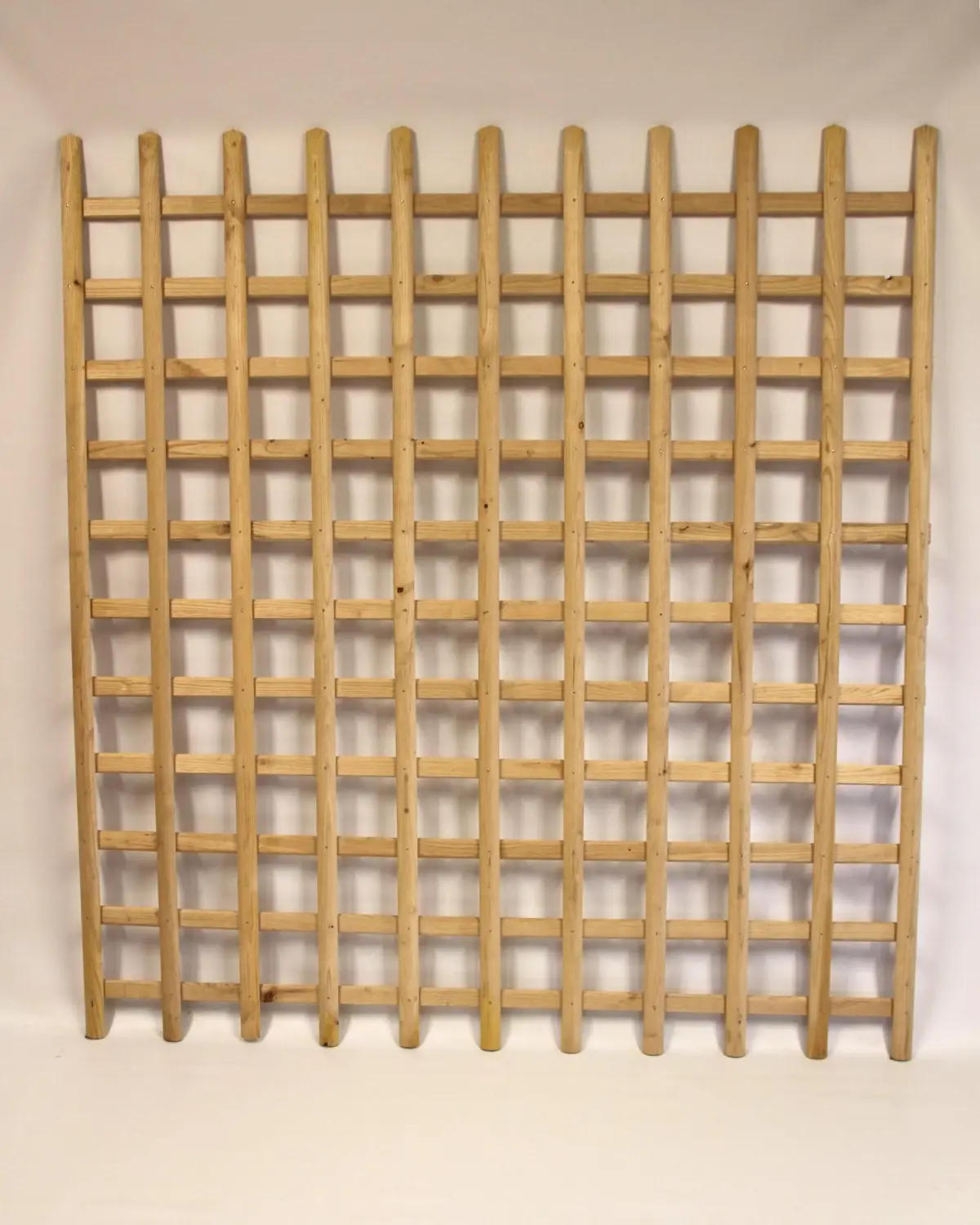 Les panneaux à mailles carrées peuvent être réalisés avec des échalas moulurés, garantissant une régularité parfaite des profils, une finition nette et un rendu esthétique haut de gamme, ou avec des échalas dressés au rendu brut et authentique, mettant en valeur le caractère naturel du bois et son charme.