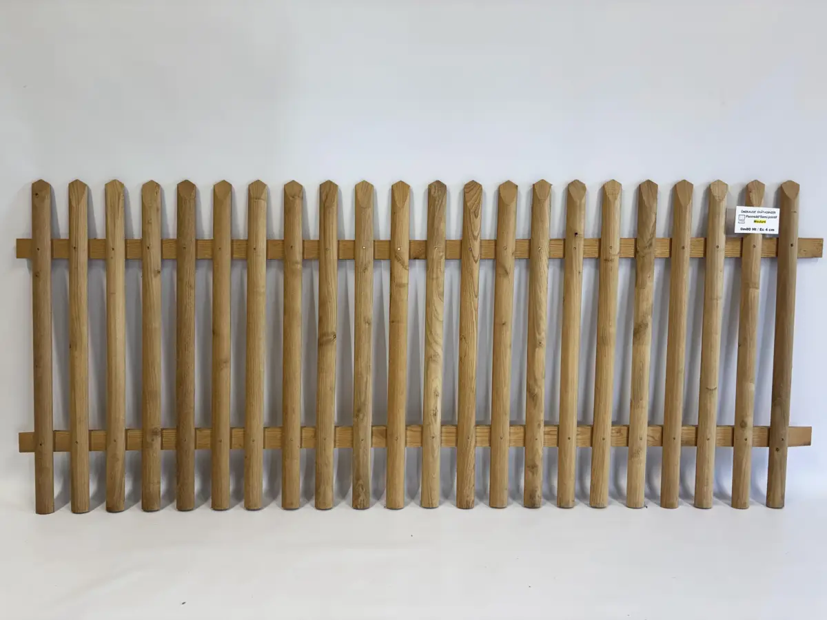 Cette combinaison « semi-jointif » avec échalas moulurés garantit un rendu esthétique homogène et soigné, tout en offrant une réelle impression de robustesse et de protection. Adaptés à tous types d’environnements : jardin, parcelle, pâture, entrée de propriété ou espace paysager, nos panneaux sont prêts à poser.
