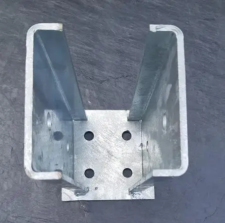 Pied de poteau en forme de U pour clôture bois 9 × 9 cm.