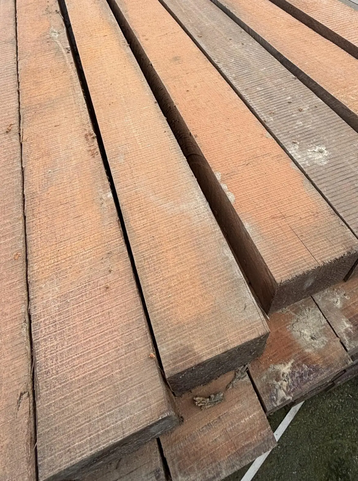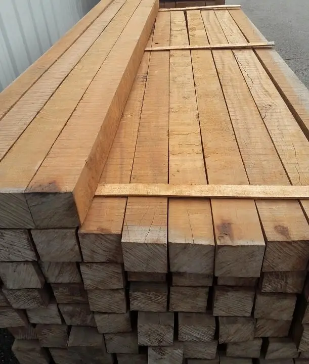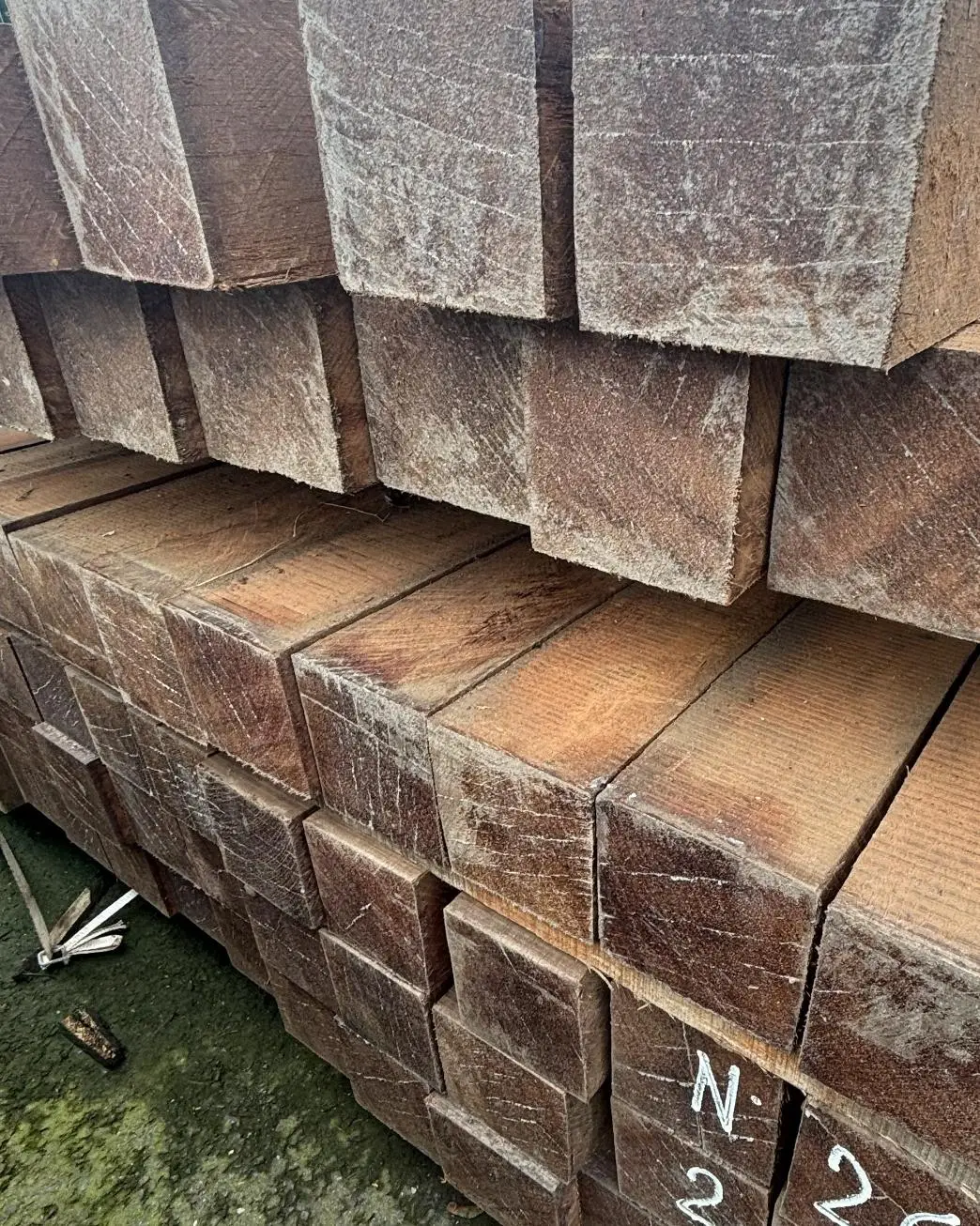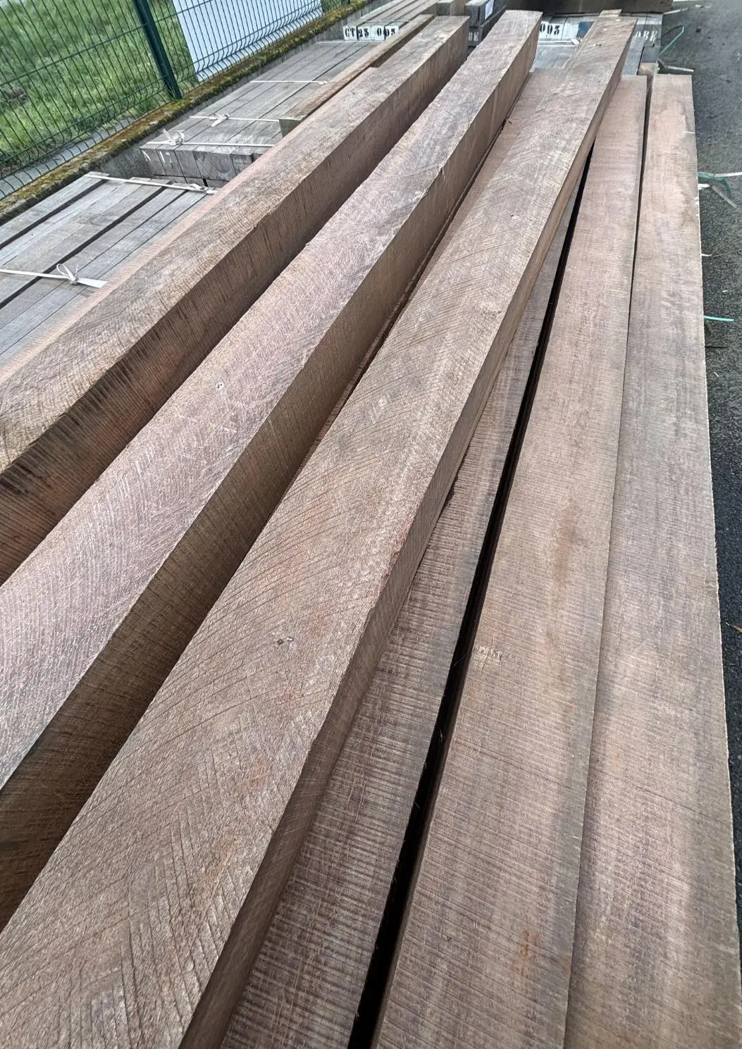 Poteaux en bois exotique massif de section 100 x 100 mm, destinés à la réalisation de structures extérieures : terrasse surélevée, pergola, carport, clôture, brise-vue ou aménagement paysager.