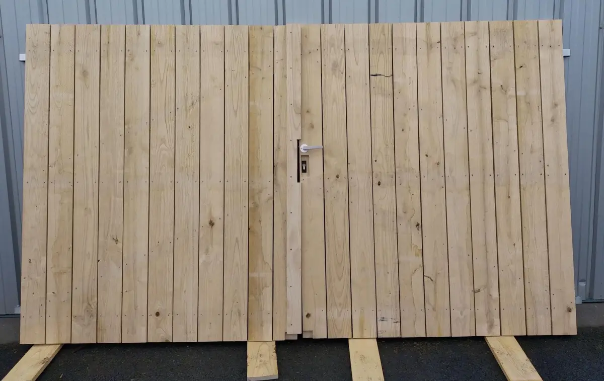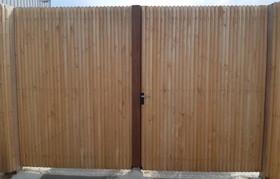 Fixer sur des poteaux bois carrés, de section adaptée à la dimension et à l’habillage du portail (90 x 90 / 120 x 120 / 150 x 150).